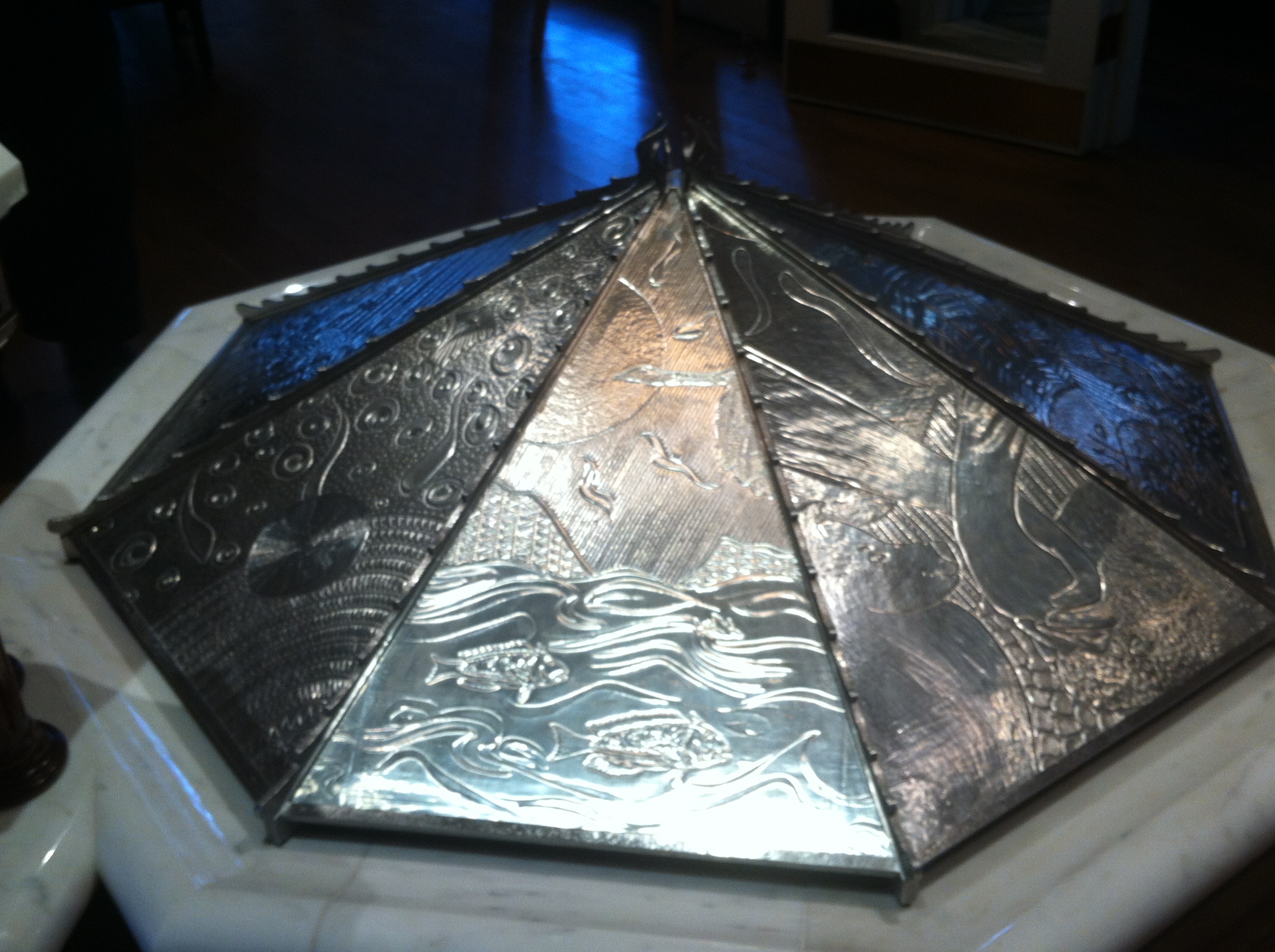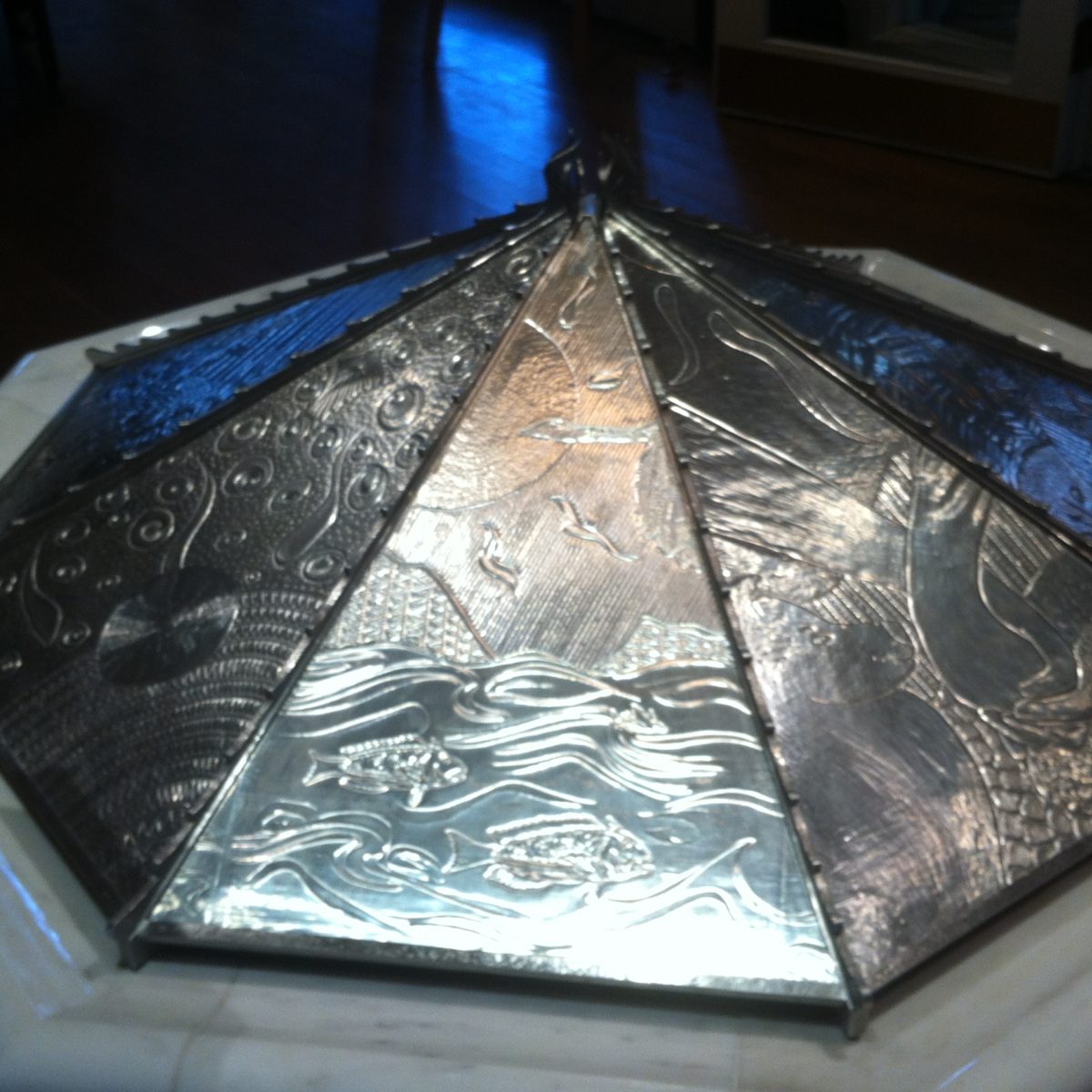 The lid to the adult font is adorned with scenes from the 7 days of creation.
